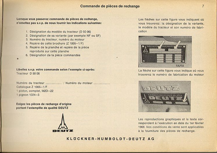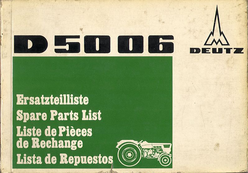 Description : Le catalogue, de 293 pages, présente le tracteur Diesel DEUTZ D 5006 dans ses moindres détails.Nombreuses figures et éclatés (+ de 140 ) . En français, anglais, allemand et espagnol.