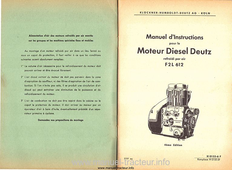 Manuel entretien catalogue pièces rechange moteurs DEUTZ F2L 612