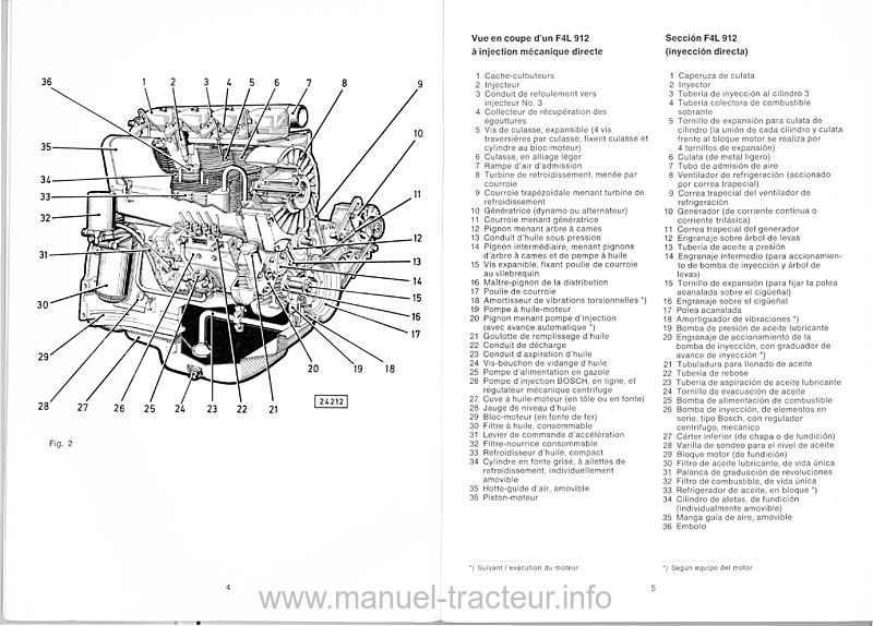 Description : Ce manuel de 72 pages présente les moteurs DEUTZ F3L, F4L, F5L et F6L 912 et 912w. En français et espagnol.