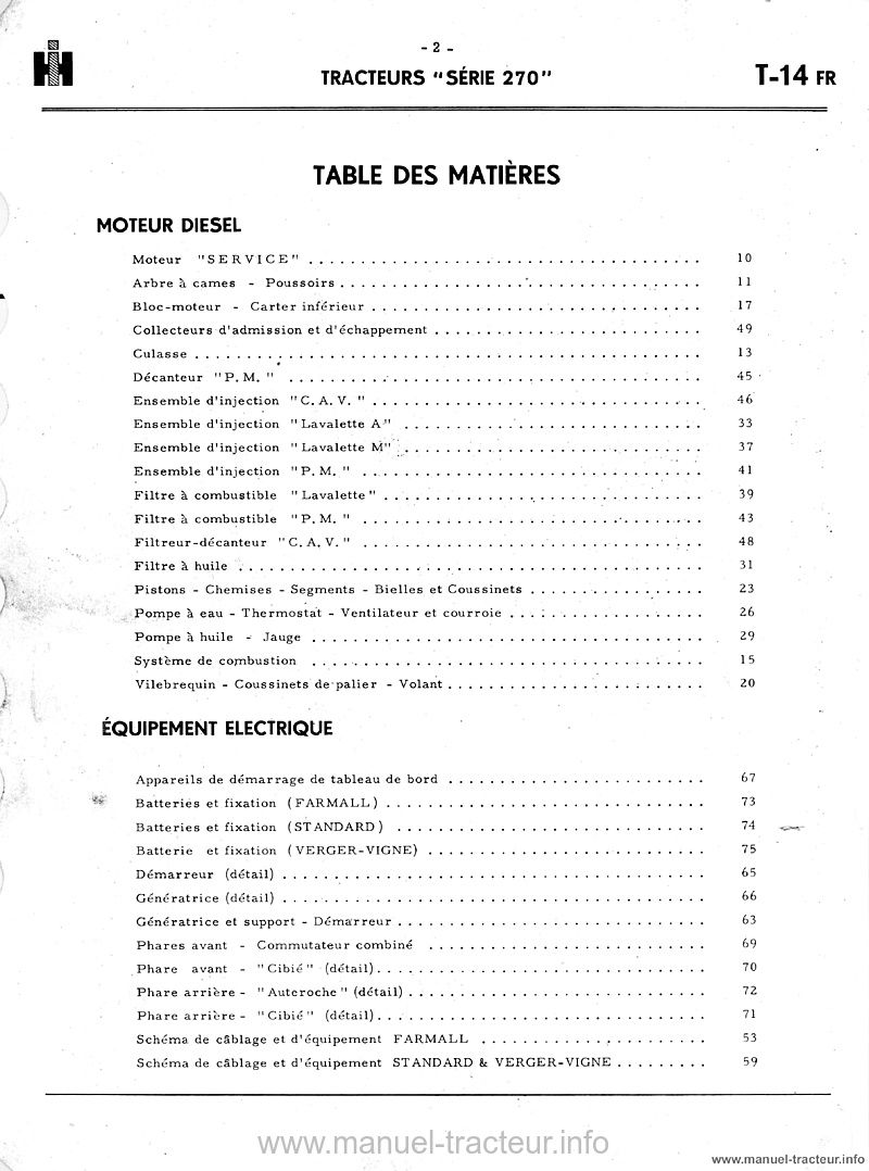Sommaire : Moteur - Équipement électrique - Châssis - Groupe hydraulique M.G.F. - Attelage 3-points - Équipements et accessoires - Jeux de pièces et divers