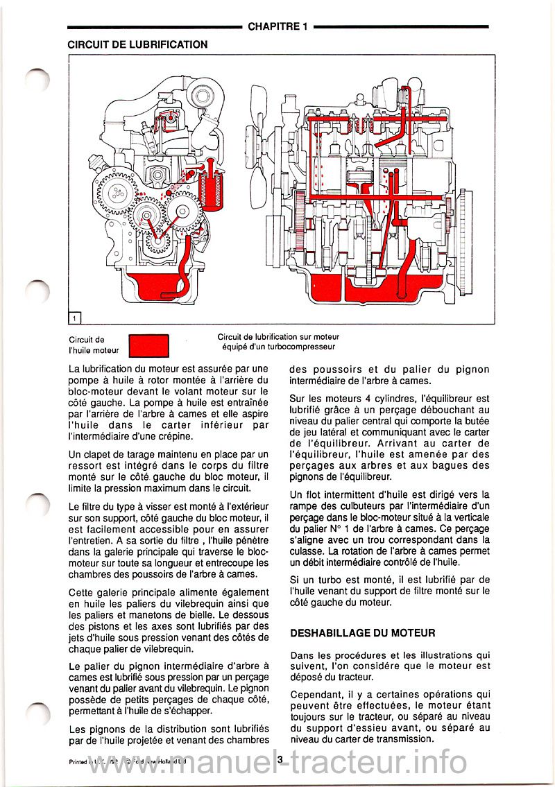 Ce manuel comporte 12 chapitres, écrit en français, décrivant le montage et démontage de toutes les parties des tracteurs, étape par étape. Plus de 1300 pages.