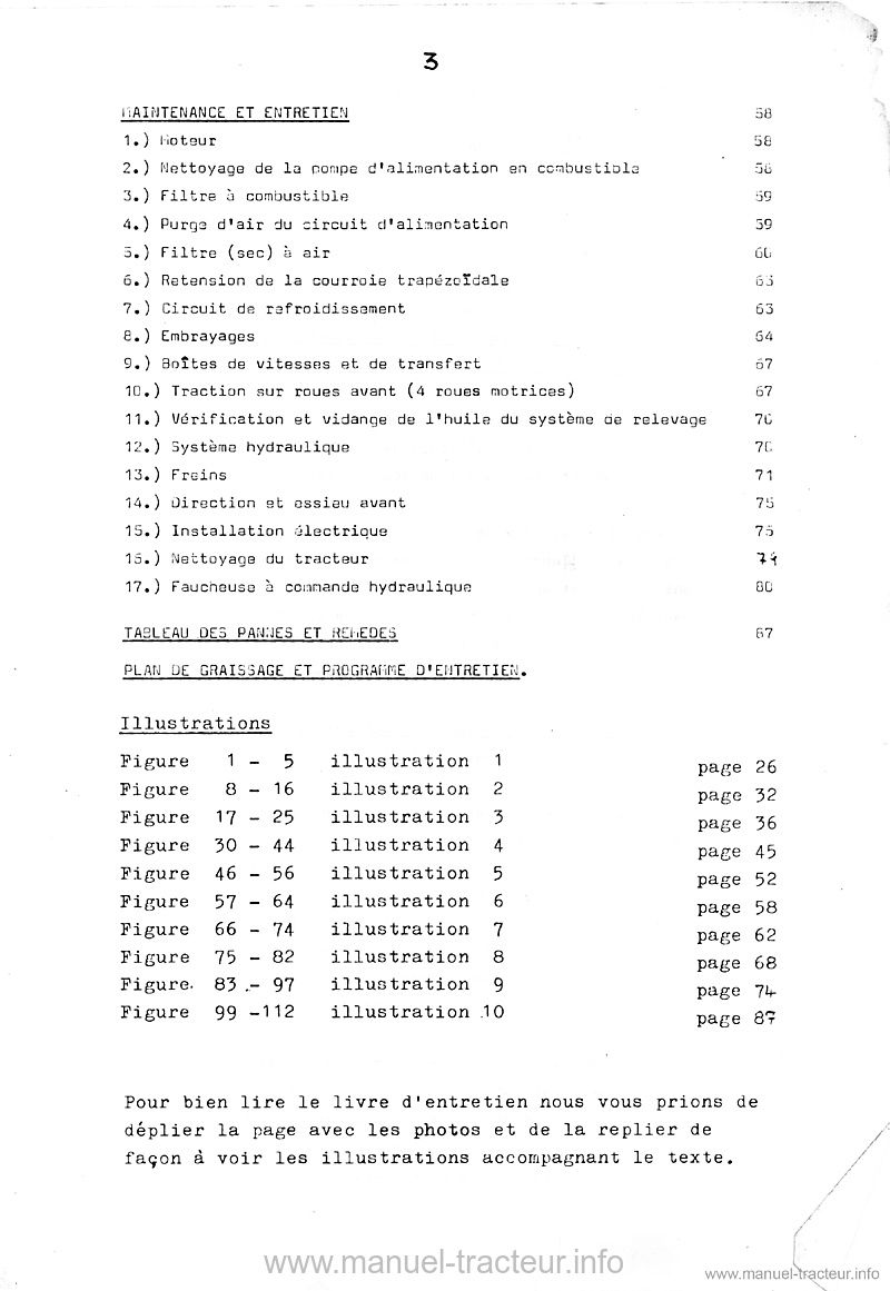 Sommaire : Caractéristiques - Lubrification et combustibles - Travaux à effectuer avant la mise en service - Prévention des accidents - Manoeuvre - Maintenance et entretien - Tableau des pannes et remèdes - Plan de graissage et programme d'entretien
