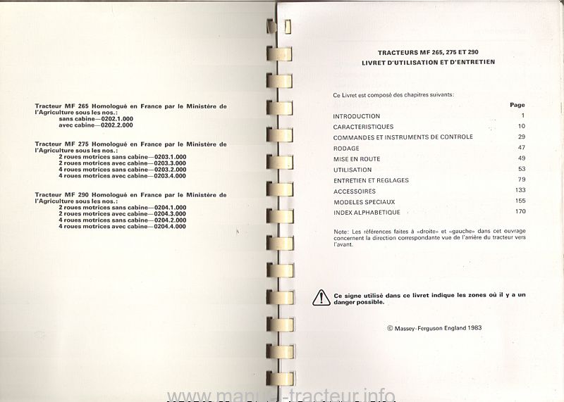 Livret entretien MASSEY FERGUSON MF 265 275 290
