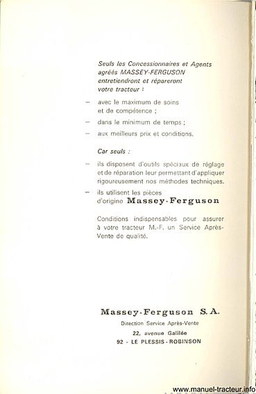 Livret entretien MASSEY FERGUSON MF 175-S