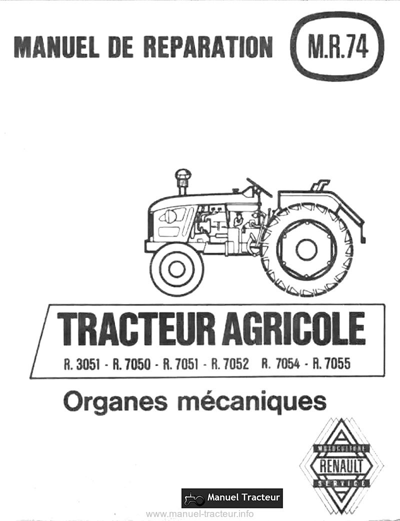 Description : Ce manuel de 140 pages en français décrit les réparations pas à pas des organes mécaniques des tracteurs suivant de type essence E30 (R3051), D35 (R7050), D30 (R7051), D22 (R7052), Super 5D (R7054) et Super 7 et 7D (R7055). Les parties moteur et électrique sont traitées dans le manuel de réparation MR75.
