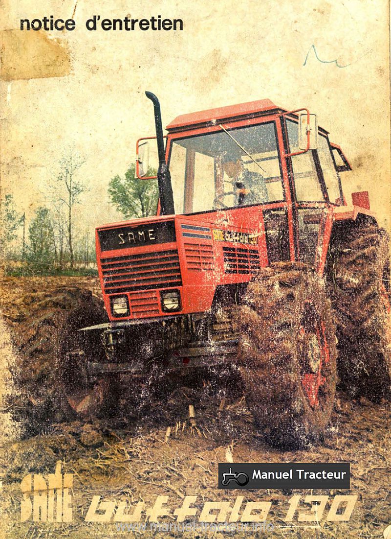 Description : Notice d'entretien pour les tracteurs Same Buffalo 130 à 2 et 4 roues motrices d'origine. En français, publié en septembre 1977.