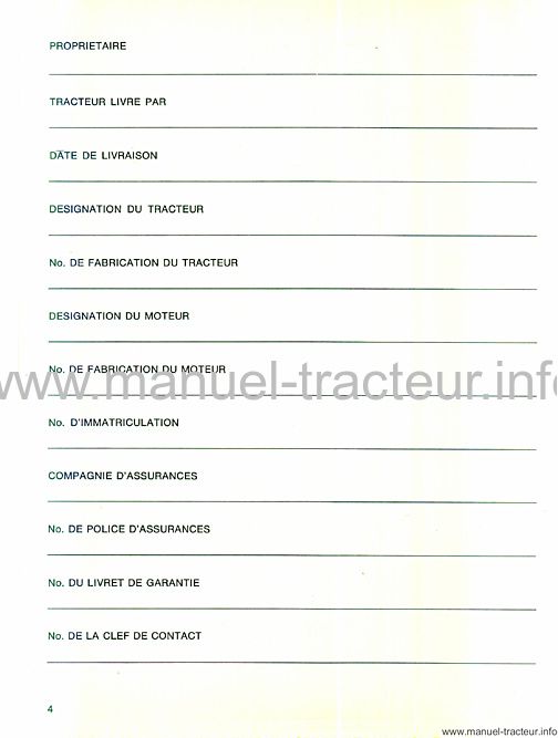 Description : Cette brochure comporte 64 pages avec un schéma de graissage. Ce manuel contient tous les renseignements dont vous avez besoin pour la conduite et l'entretien de votre tracteur.