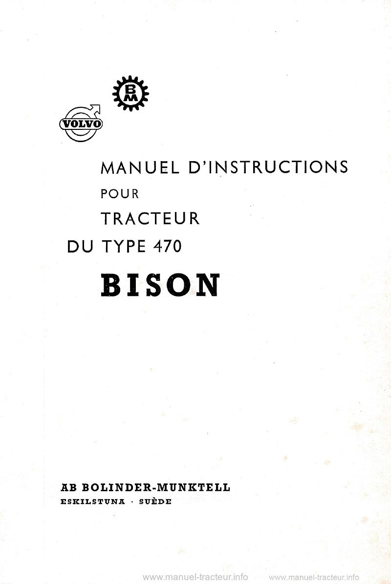 Description : Ce manuel comporte 62 pages. Ce manuel contient une brève description de votre tracteur Volvo BM du type 470 Bison ainsi que les instructions pour un usage et un entretien courant. En français, publié en 1960.